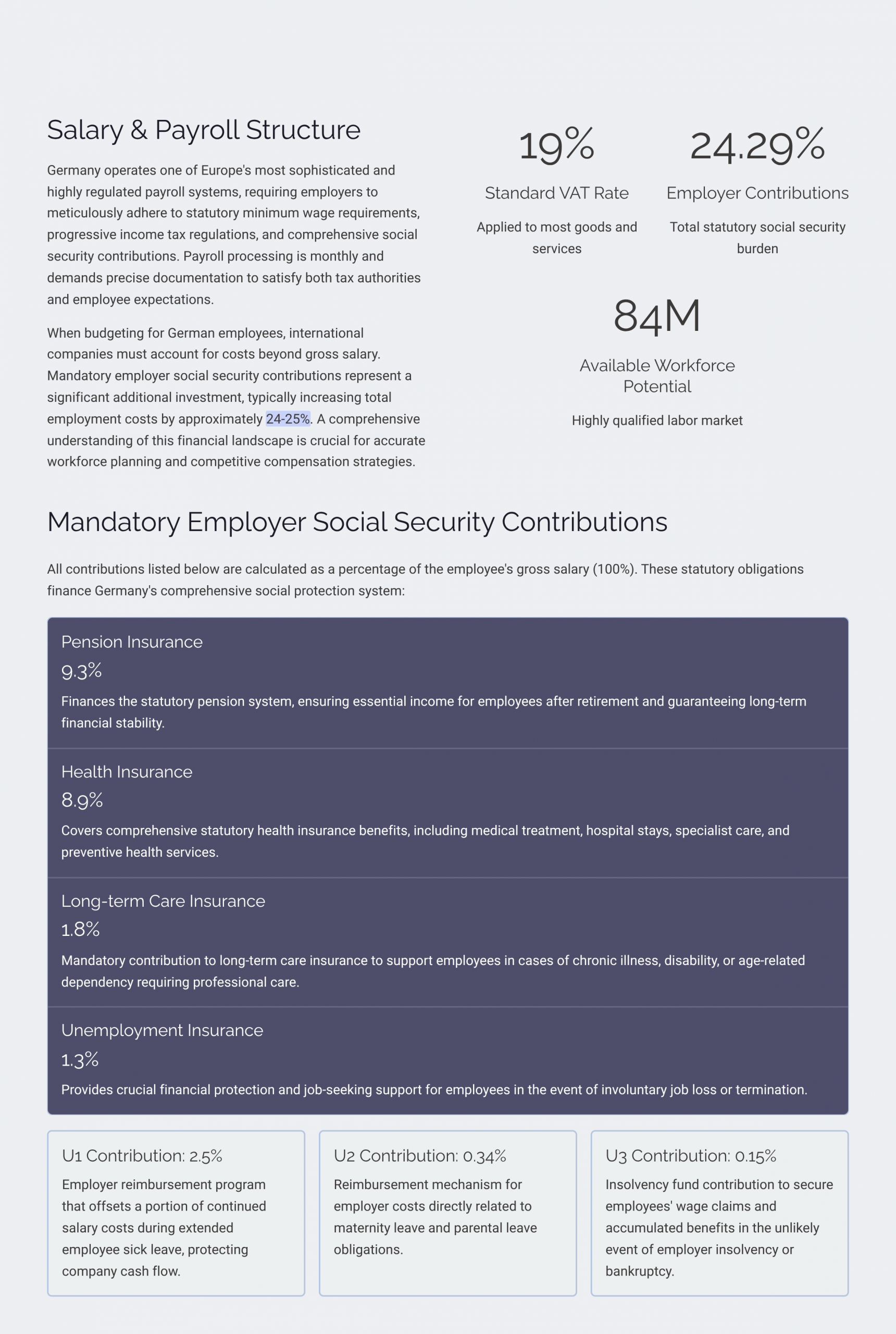Germany has one of the most regulated labor markets in Europe. Strict employment protection, mandatory social security systems, and complex termination rules make compliant hiring challenging without a local legal setup.